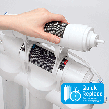 В комплект поставки уже входят полный набор картриджей, отдельный кран для очищенной воды и всё необходимое для быстрой установки фильтра на месте эксплуатации.