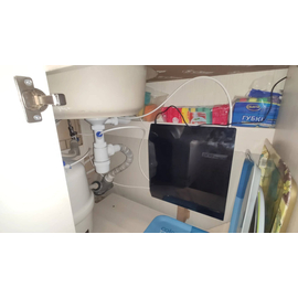 Недавно поставили на кухню этот фильтр. Установили и привезли очень оперативно. Места он много не занимает, очень компактный и легкий. В комплекте был кран для чистой воды, накопительный бак и минерализатор. Теперь вода стала чистой и мягкой, не доставляет неудобств при мытье посуды.