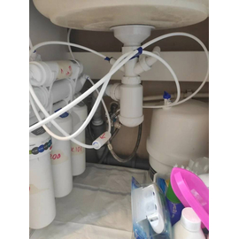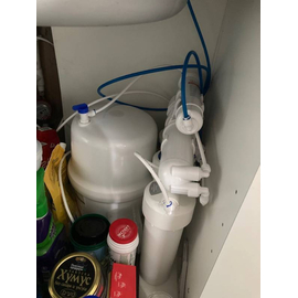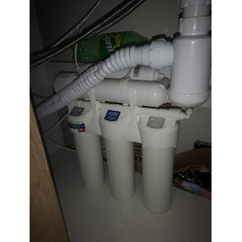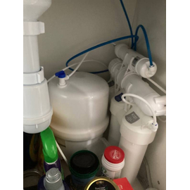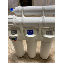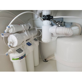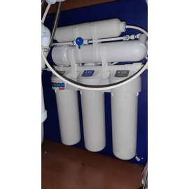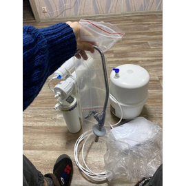 В комплект уже входят картриджи и мембрана, отдельный кран для очищенной воды, накопительный бак и всё необходимое для быстрой установки фильтра на месте эксплуатации.